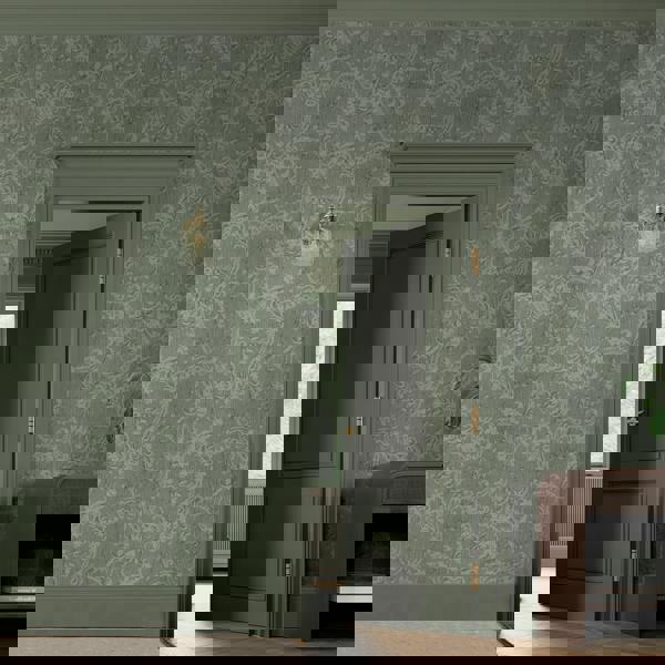 Florentine sets the scene of a period drama, featuring a traditional baroque scroll design with a linen look textured ground bringing interest and a level of depth to the wall. This luxury heavyweight vinyl is perfect as a feature or across all 4 walls. In a Laurel colourway with soft green tones its perfect for creating a serene look.