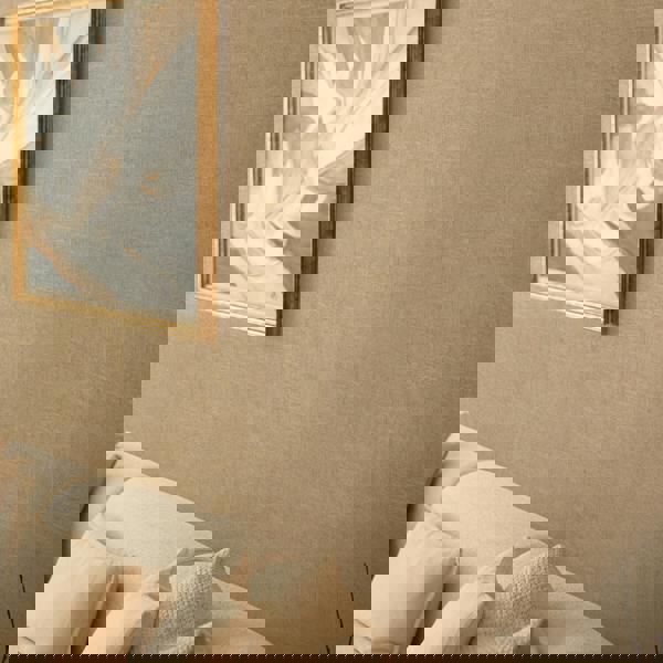 This deeply textured heavyweight vinyl is a contemporary semi plain perfect for any room in your interior to add interest to the walls. The deep emboss is both extremely durable and liveable for all interiors. With a hint of metallic it will bring a touch of glam to your home. Co ordinates beautifully with our Bali and Congo designs. In a beautiful gold colourway its perfect for creating a glam look.
