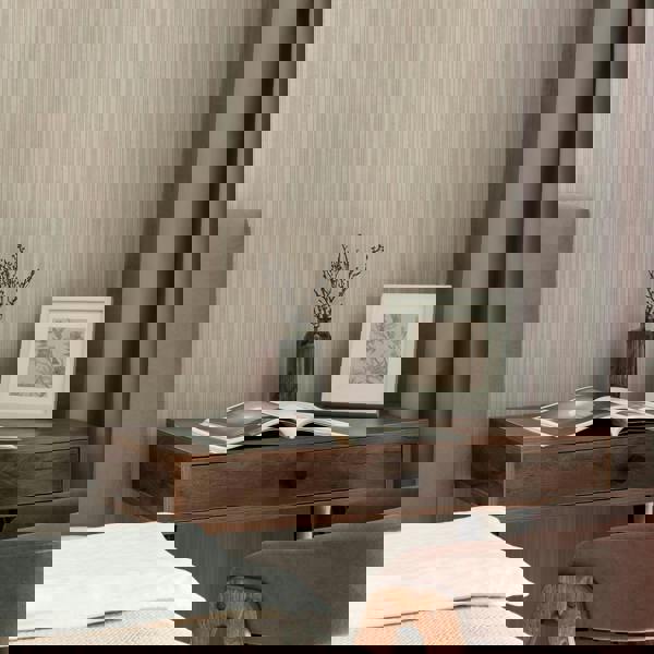 Mariana wallpaper in a soft pearl colourway features a refined textured stripe design that adds depth and dimension to any interior. The durable, heavyweight vinyl construction provides long-lasting performance and enhanced resistance to wear, making it suitable for high-traffic areas. Subtle raised striping creates a sophisticated, tactile surface that elevates walls with understated elegance.