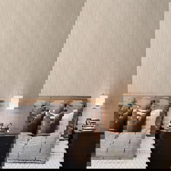 Mariana wallpaper in a beautiful sand colourway features a refined textured stripe design that adds depth and dimension to any interior. The durable, heavyweight vinyl construction provides long-lasting performance and enhanced resistance to wear, making it suitable for high-traffic areas. Subtle raised striping creates a sophisticated, tactile surface that elevates walls with understated elegance.