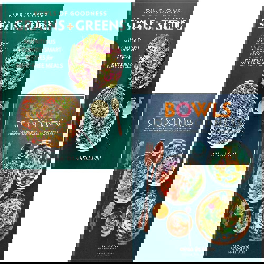 This two-book hardback collection by Nina Olsson brings together two titles focused on bowl-based vegetarian cooking. Across the set, the recipes centre on whole grains, fresh greens and plant-based ingredients, presented as adaptable options for different meals and occasions.