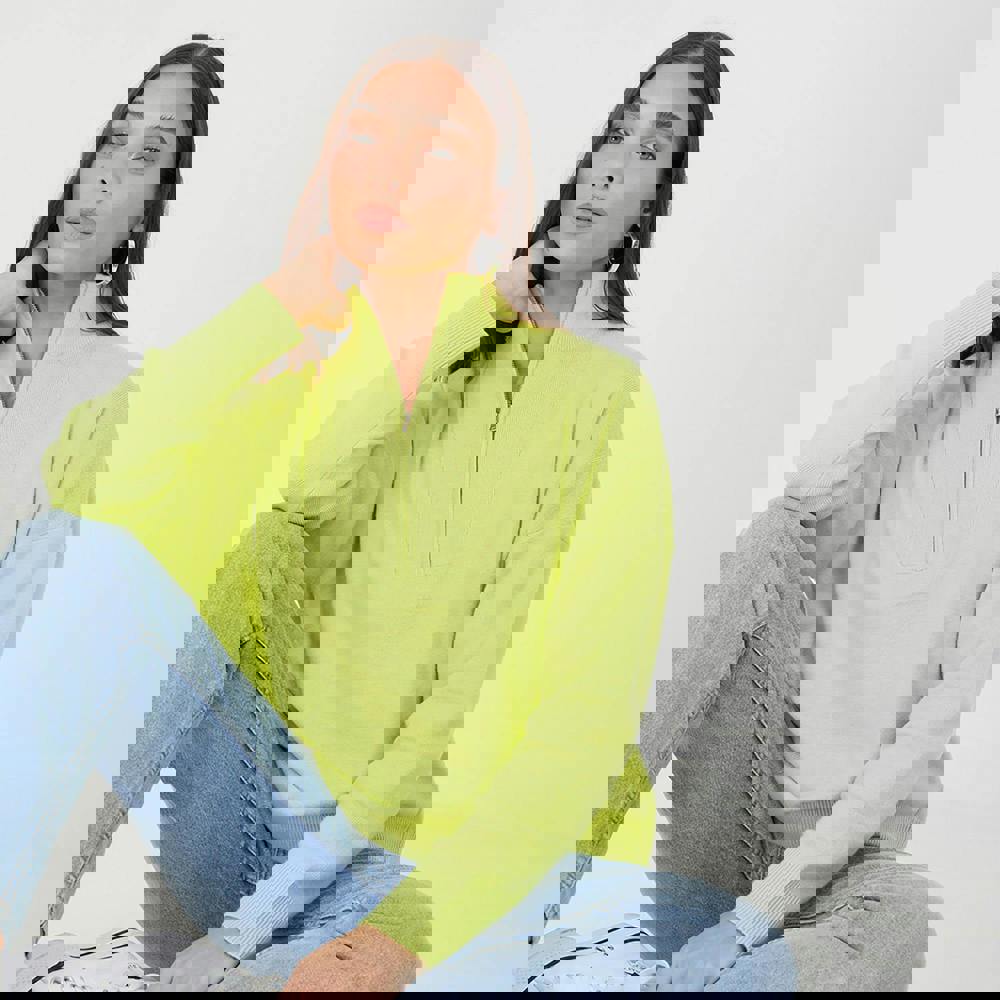Elevate your everyday style with this knitted jumper. This cosy stylish jumper features a half zip fastening and ribbed collar and cuffs. Team with a pair of jeans for effortless style. Model wears UK size S.