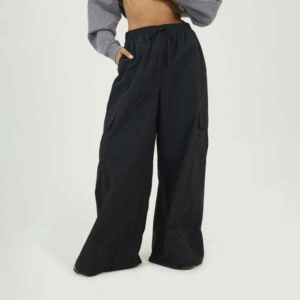 Stay on-trend with these wide-leg cargo trousers. Designed in a relaxed, baggy silhouette, they feature an elasticated waistband with a drawstring for a comfortable, adjustable fit. Finished with practical cargo pockets down the legs, these trousers combine casual style and functionality, making them perfect for streetwear-inspired outfits or laid-back everyday looks. Model wears UK size S.