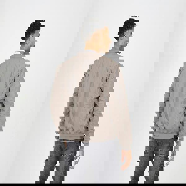 Elevate your casual wardrobe with this bomber jacket, designed with a sleeve pocket detail for a utilitarian edge. Featuring two lower pockets and ribbed trim to the collar, cuffs, and hem, it delivers a classic silhouette with modern touches. Style it over a crew neck tee and slim-fit jeans for an easy everyday outfit.