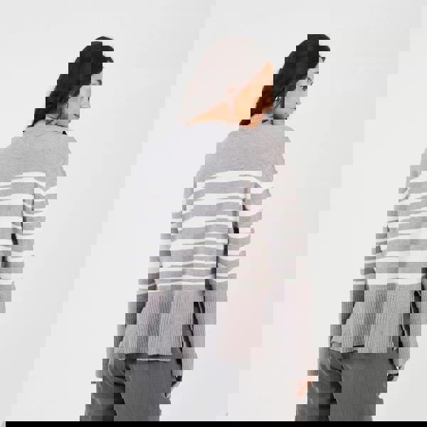 This V-neck cardigan is the ultimate addition to your transitional wardrobe. This relaxed fit style features button fastenings, stripe pattern on the body, wide sleeves, ribbed cuffs and hem and side split detail. Pair with jeans for the ultimate casual look. Model wears UK size S.