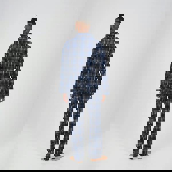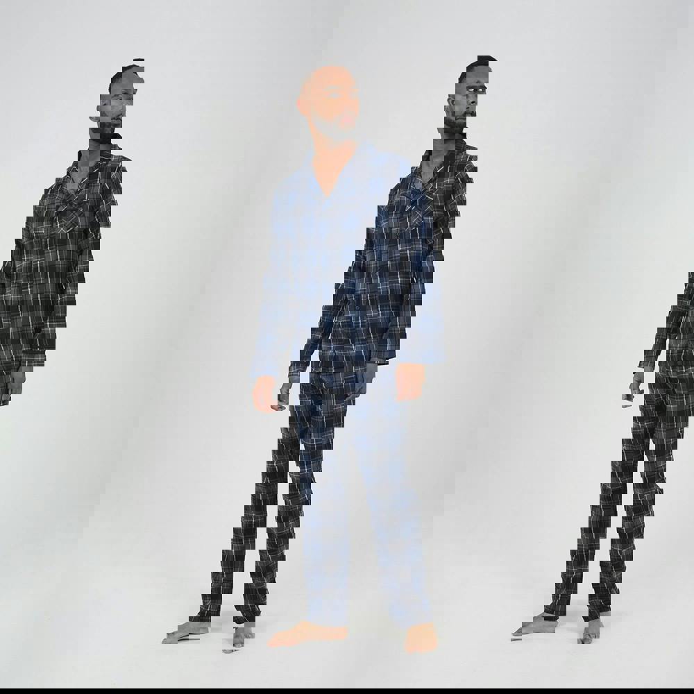 Sleep soundly in this checked pyjama set, featuring a long sleeve collared shirt with a patch chest pocket and full-length matching bottoms. The bottoms include two waist pockets for added practicality. Crafted for comfort, this set is perfect for cosy nights and easy care.