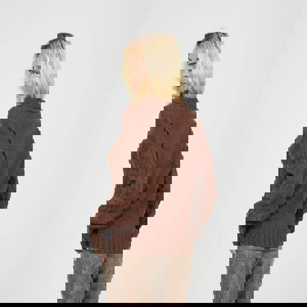 Stay effortlessly stylish with this cable neck jumper. Featuring long sleeves and a relaxed drop shoulder design, it showcases a flattering V-neck with collar and intricate cable knit detailing on the front and sleeves. Ribbed collar, cuffs, and hem provide structure and comfort, making this jumper a versatile, chic addition to any wardrobe.