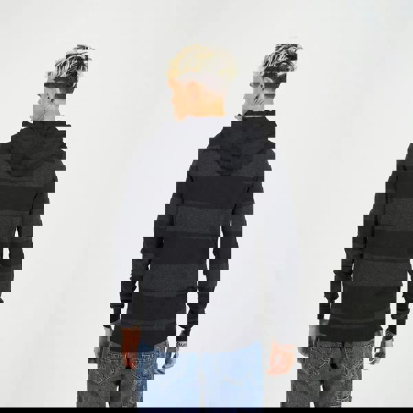 Stay warm in style this season with this striped knitted hoody. Crafted from 100% cotton, featuring all over stripe pattern, fixed hood with drawstring detail, kangaroo pocket on the front and applique eagle emblem on the chest, this hoody is the perfect addition to your winter wardrobe. Team with jeans for an effortless casual look. Model wears UK size M.