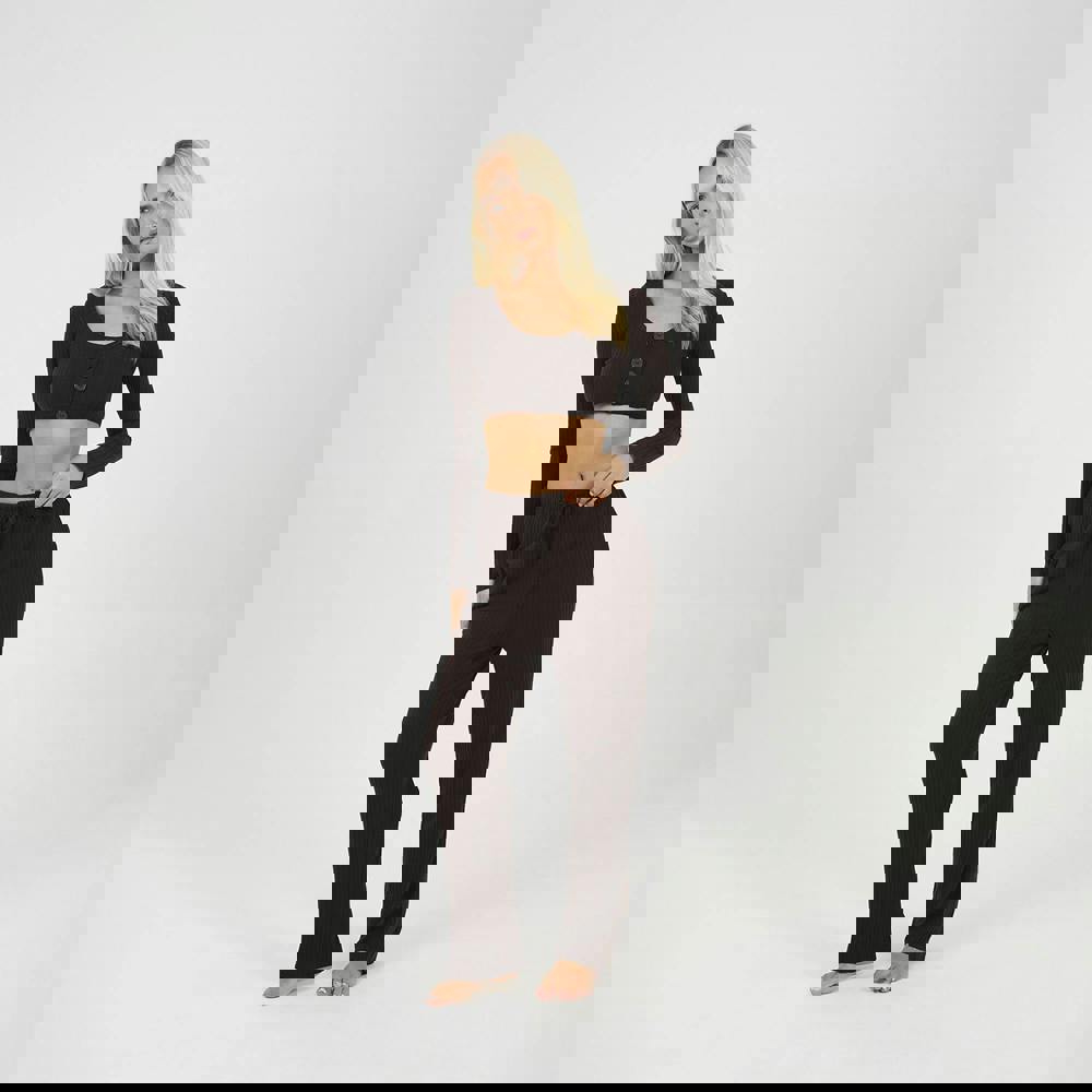 Enhance your loungewear collection with this Brave Soul two-piece lounge set. The cropped long-sleeve top features button details and a scoop neck shape for a stylish touch. Paired with wide-leg bottoms that have a drawstring waist and two pockets, this set seamlessly blends comfort and fashion. Machine washable for convenience, it's perfect for relaxed days.