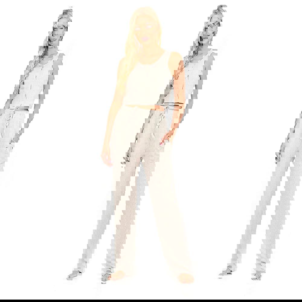 Indulge in ultimate comfort with this Brave Soul loungewear set. Crafted from soft waffle fabric, this set includes a cropped button-front vest and high-waisted wide-leg trousers. The drawcord waist detail ensures a customizable fit, while two side pockets add practicality. Machine washable for easy care, this loungewear set is perfect for relaxing at home in style. Model wears UK size S.
