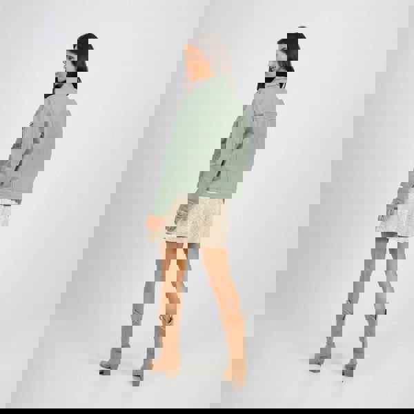Embrace western chic with this Brave Soul denim jacket. Crafted in 100% cotton, it features two chest pockets, button fastenings, and contrast colour topstitching for an authentic look. The regular fit ensures both style and comfort. Elevate your casual style with this timeless piece. Model wears UK size 8.