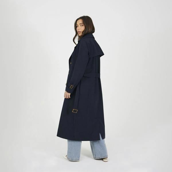 This double-breasted trench coat is a staple for the season. This mac is maxi in length and features buckle cuffs, and double breasting with a waist tie belt. Includes microfibre coating. Model wears UK size 8.