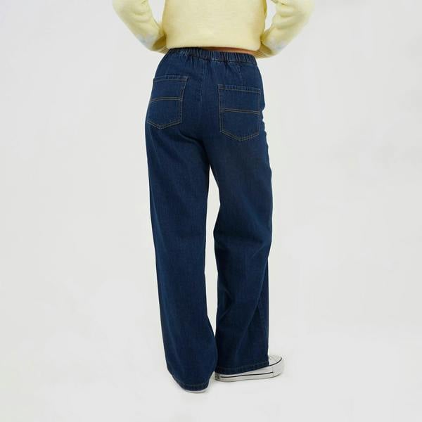 Refresh your denim collection with these jeans, featuring a straight leg cut and mid-rise fit. These jeans offer everyday comfort with an elasticated waistband and adjustable drawstring. Finished with contrast stitch detailing and two handy waist pockets, they’re crafted from soft cotton for a casual yet put-together look perfect for any laid-back outing. Model wears UK size 8.