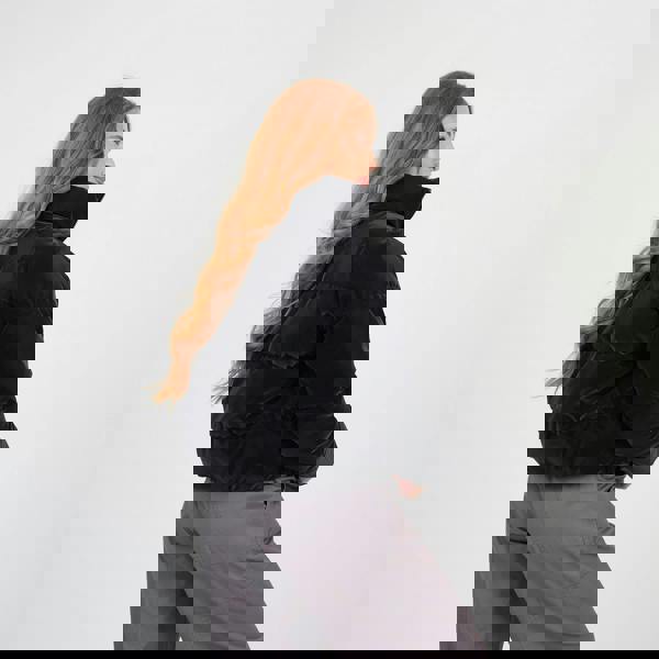Introducing this faux sharkskin puffer jacket, the newest addition to your wardrobe. This quirky padded design is short in length and features PU coated faux sharkskin finish, full zip fastening, elasticated cuffs and hem and two concealed pockets on the side seams. Layer over any casual outfit to complete the look. Model wears UK size 8.