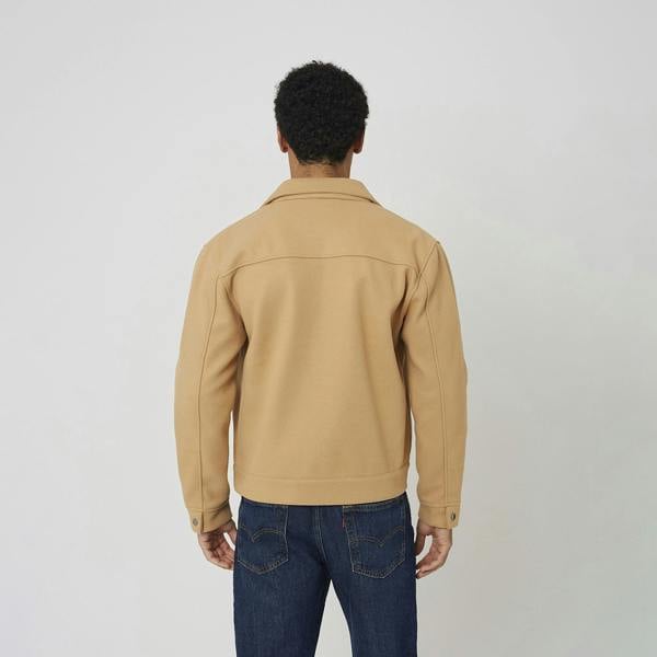 Elevate your wardrobe with this western-style jacket, crafted from faux wool for a warm and stylish finish. Featuring classic western detailing, it includes two chest pockets, two concealed lower pockets, and cuff popper fastenings for a clean, structured look. The zip-through fastening and solid colourway make it a versatile layer for everyday wear. Model wears UK size M.