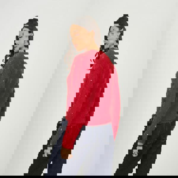 Elevate your knitwear collection with this cardigan. Featuring long sleeves and a flattering V-neck, it’s adorned with elegant fancy button details and mixed jewel embellishments for a touch of sparkle. Perfect for layering over dresses or tops, this statement cardigan blends comfort and sophisticated style for a polished, standout look. Model wears UK size S.