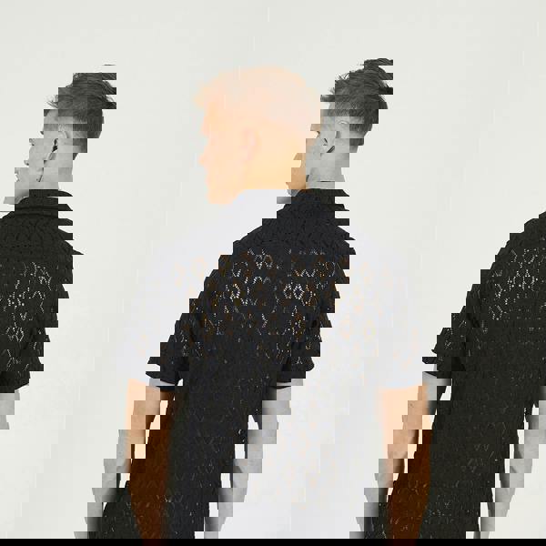 Channel effortless summer style with this shirt, crafted in an all-over geometric crochet knit for a lightweight, breathable feel. The short sleeves and revere collar give it a laid-back, vintage-inspired silhouette that’s perfect for warm-weather layering. Whether you're heading out or relaxing in the sun, this standout piece adds texture and attitude to any outfit. Model wears UK size M.