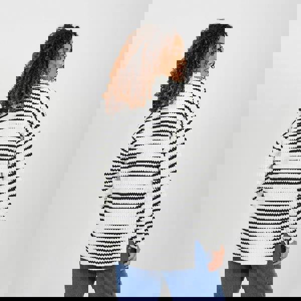 Introducing this striped knitted jumper, the ultimate addition to your winter wardrobe. This versatile tunic length style features all over fisherman knit with stripe pattern, zip neck fastening, wide sleeves and split detail on the hem. Throw on over leggings for an effortless daytime look. Model wears UK size S.