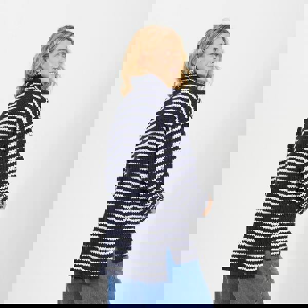 Introducing this striped knitted jumper, the ultimate addition to your winter wardrobe. This versatile tunic length style features all over fisherman knit with stripe pattern, zip neck fastening, wide sleeves and split detail on the hem. Throw on over leggings for an effortless daytime look. Model wears UK size S.