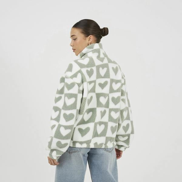 Stay cosy in style with this printed fleece, crafted from soft sherpa fleece. Featuring a high neck and relaxed drop shoulder for a comfortable, laid-back fit. A full zip closure and two lower pockets add functionality, making this printed fleece perfect for layering or everyday casual wear. Model wears UK size S.