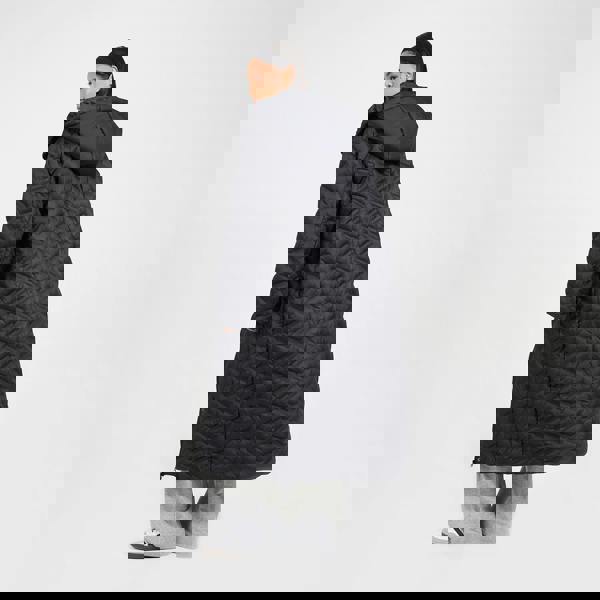 Step into warmth and style with this quilted jacket. Designed in a long length with an all-over heat seal pattern, it features a full zip closure and a fixed hood with popper fastening for added protection. Two lower welt pockets offer practicality, making it the perfect cold-weather essential with a modern edge. Model wears UK size 8.