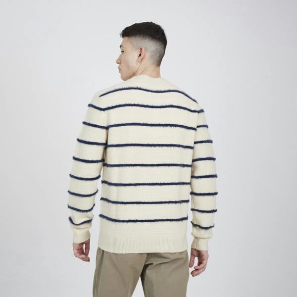 Stay warm in style this winter with this striped knit jumper. Featuring a high crew neck, all over textured stripe pattern and ribbed hem and cuffs, this jumper is an essential addition to your wardrobe. Team with your favourite jeans to complete the look. Model wears UK size M.