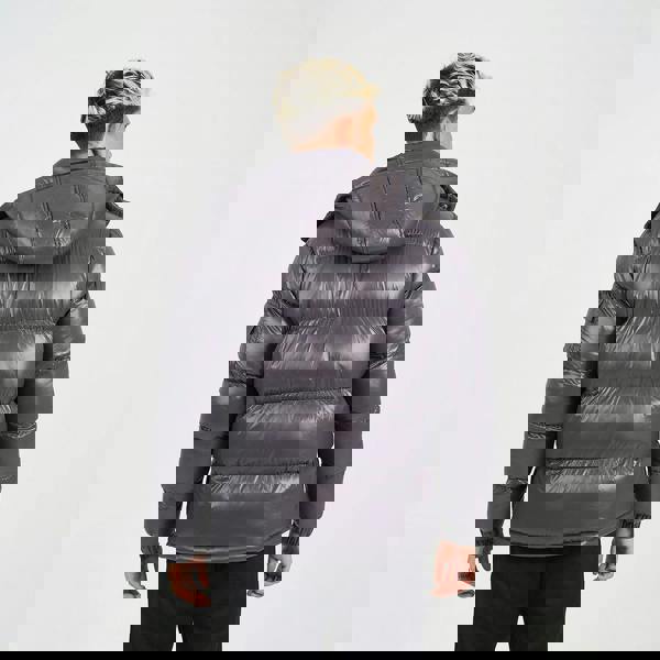 Stay warm and protected with this puffer jacket, designed for everyday wear. This padded puffer style features a snug funnel neck and a detachable hood for versatile comfort. A sleeve pocket, two lower zip pockets, and zip fastening add practicality, while elasticated cuffs and a semi-shine outer complete this functional, stylish cold-weather essential. Model wears UK size M.