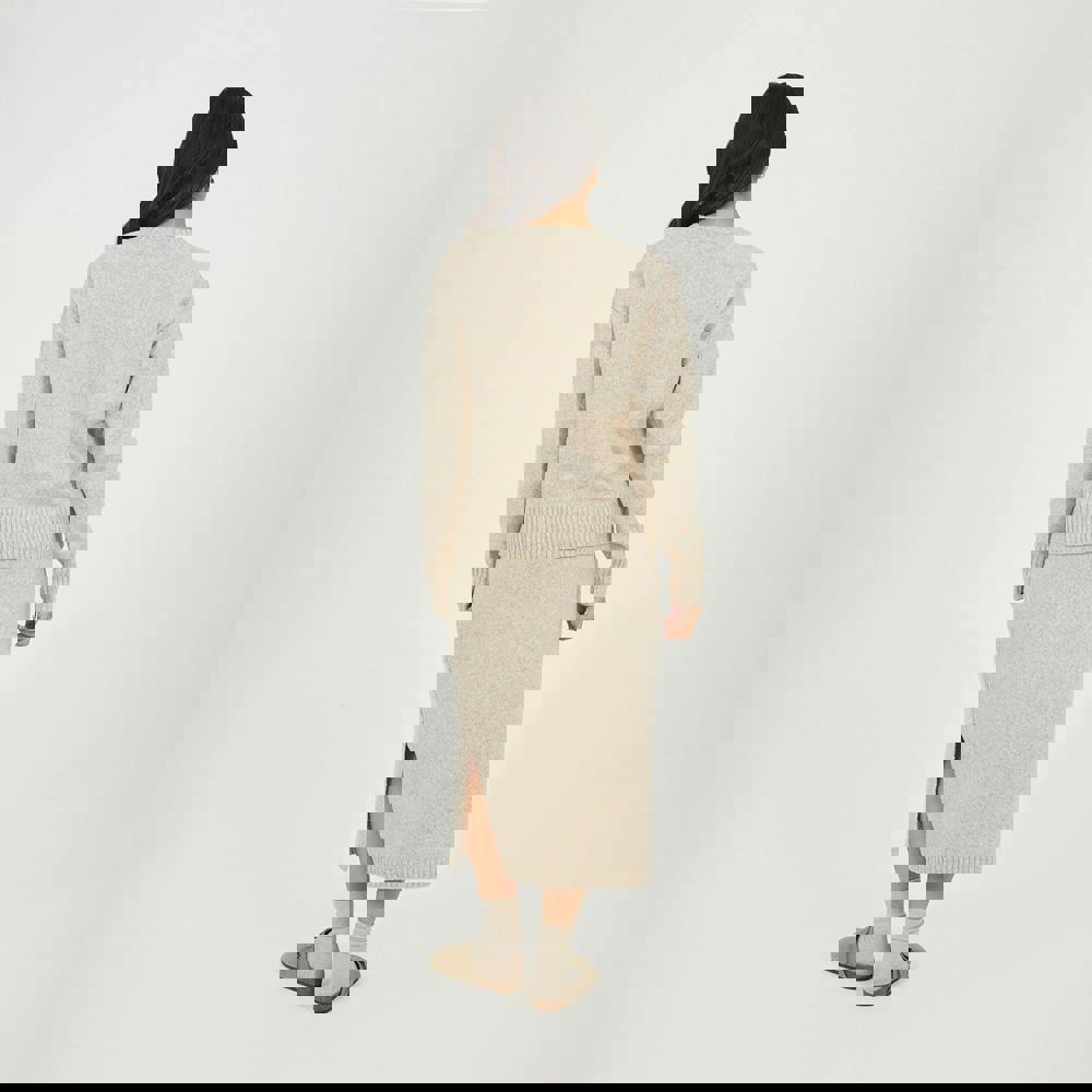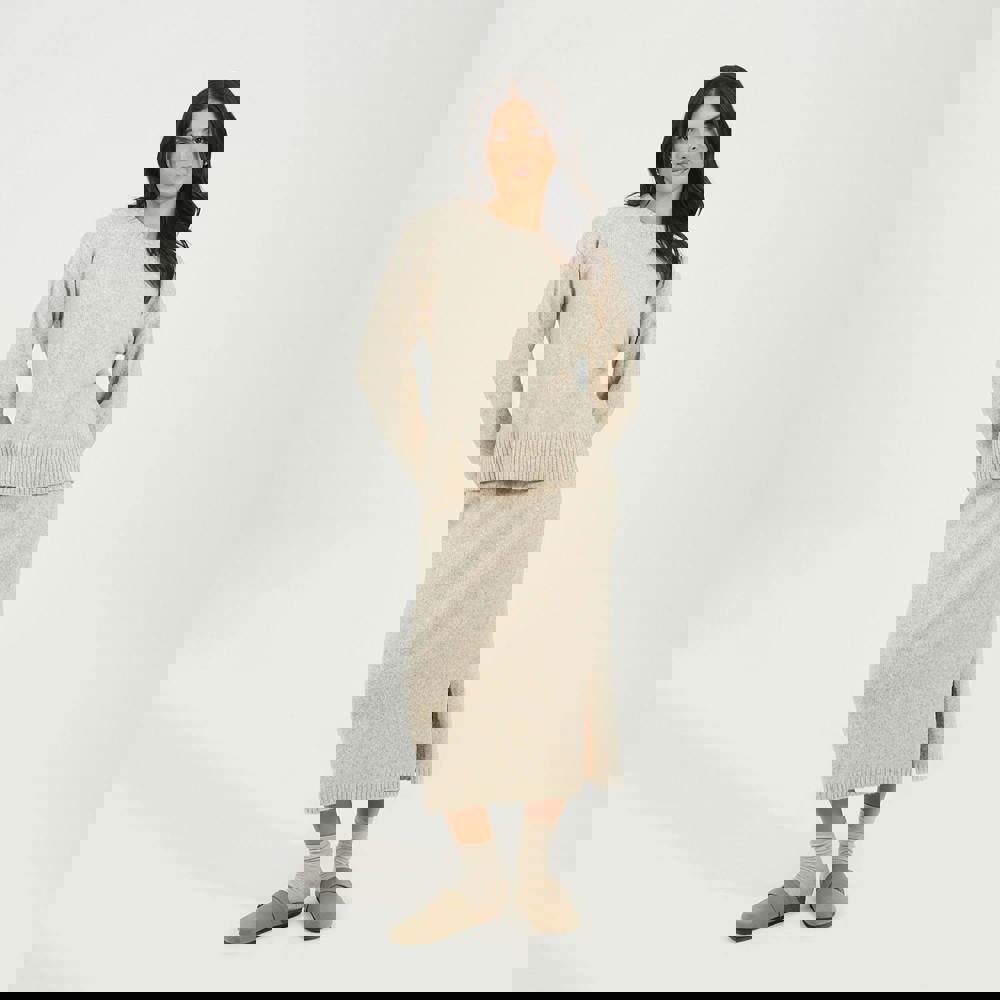 Effortless style made easy with this knitted jumper and midi skirt co-ord Women. This matching set includes a crew neck jumper with long sleeves, drop shoulders, and a relaxed, loose fit, finished with ribbed trims for comfort. Paired with the midi-length skirt with split hem detail, it’s the perfect blend of cosy and chic for a polished everyday look. Model wears UK size S.