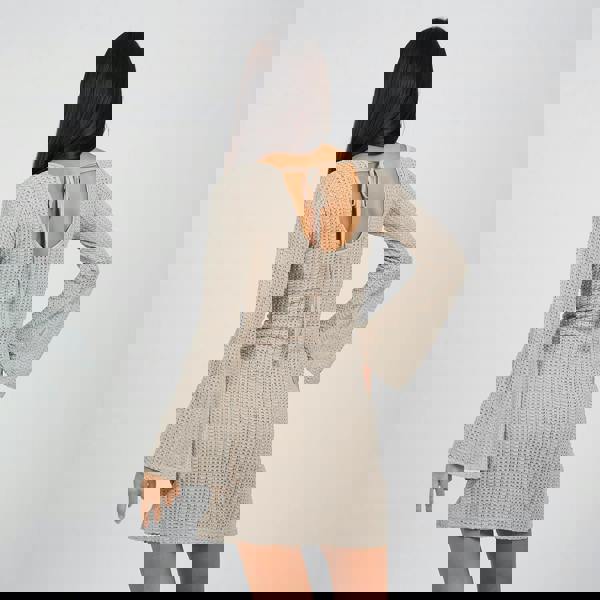 Elevate your wardrobe with this Brave Soul knitted mesh mini dress. Embrace a chic look with bell sleeves and a round neck, while the scoop back and back tie detail add a touch of allure. The all-over cut-out pattern enhances the dress's appeal, the perfect beach cover-up or throw-on over a simple dress to style up for an evening out. Model wears UK size S/8.