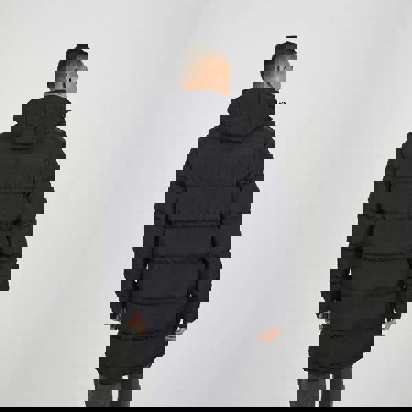 This longline hooded padded jacket is a season staple. Features medium padding, zip and popper fastening, funnel neck, toggle hood, two side pockets with popper fastening, and two zip chest pockets. This puffer is perfect for keeping warm this season. Model wears UK size M.