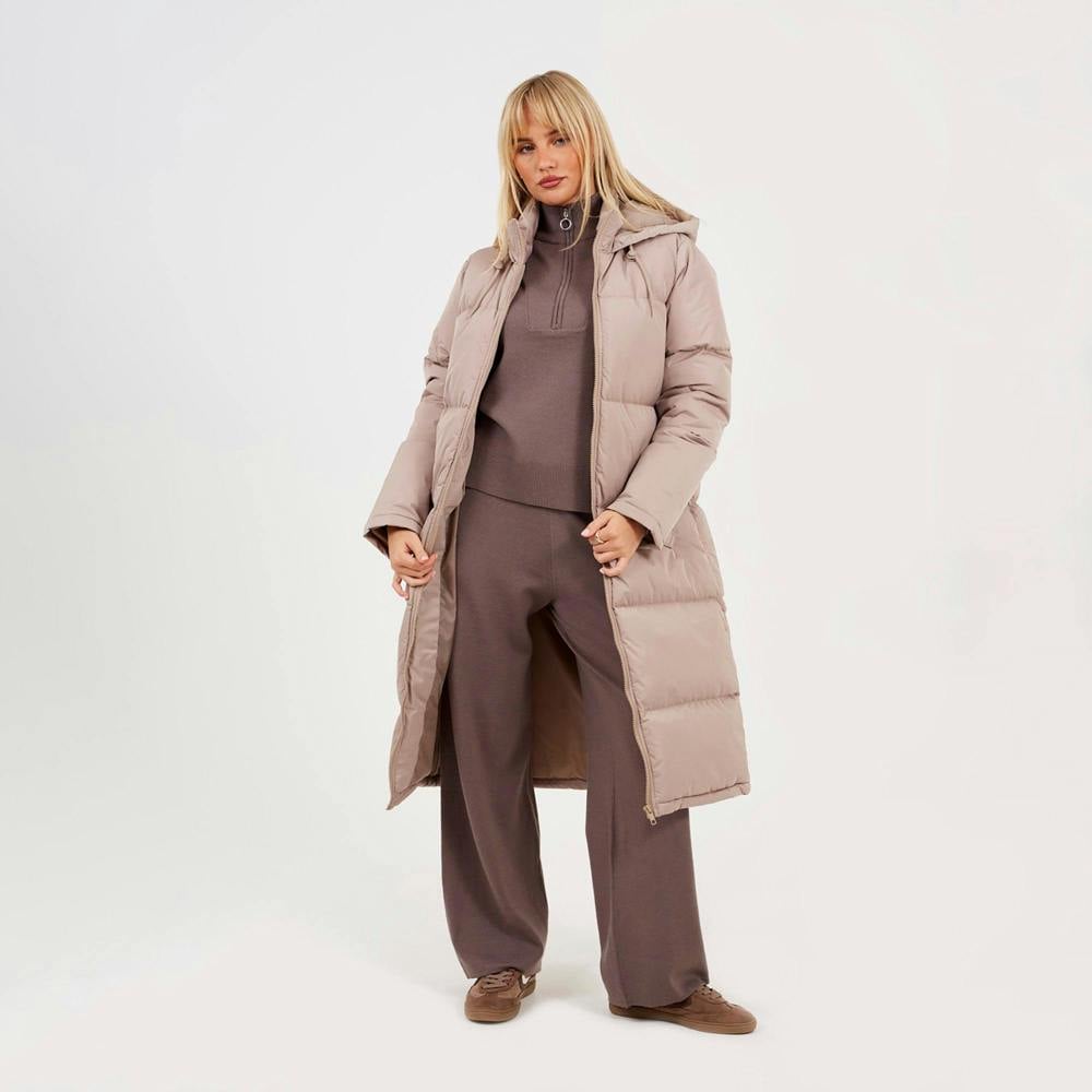 Stay cosy this season in this maxi-length padded jacket. Features hood with drawcord and toggle, funnel neck, zip fastening, two side popper fastening pockets and medium padding. This jacket is perfect for layering and keeping warm this season. Model wears UK size 8.