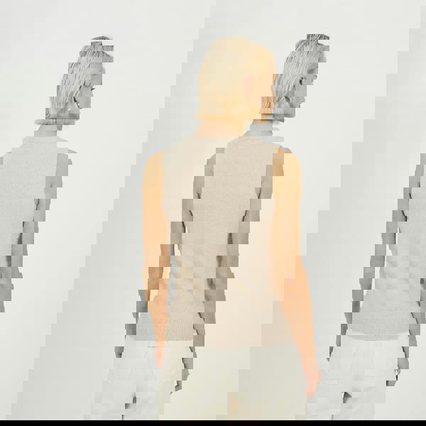 Layer up in style with this knitted waistcoat. Designed with a flattering V-neckline, soft mossy yarn for a cosy feel, and mock tortoiseshell buttons for a touch of charm. The ribbed hem adds shape and structure, making it a versatile piece for smart or casual outfits all year round. Model wears UK size S.