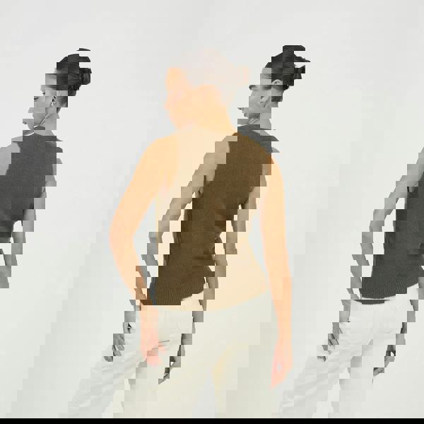 Layer up in style with this knitted waistcoat. Designed with a flattering V-neckline, soft mossy yarn for a cosy feel, and mock tortoiseshell buttons for a touch of charm. The ribbed hem adds shape and structure, making it a versatile piece for smart or casual outfits all year round. Model wears UK size S.