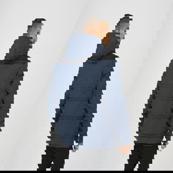 Stay warm and stylish with this padded quilted hooded jacket. Featuring a soft shell upper contrast panel, fixed hood, elasticated cuffs, and two zipped lower pockets, it provides lightweight insulation and practical functionality for cooler days. Perfect for layering over casual outfits.