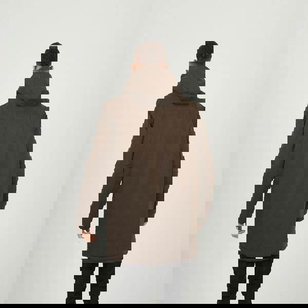 Step out in sleek, weather-ready style with this padded zip-through mac. Designed in a classic mac silhouette with full zip fastening and a fixed hood, it offers lightweight insulation for cooler days. Two lower pockets add practical detail without compromising the clean finish. Pair it with a knitted jumper and tapered trousers for a refined everyday look.