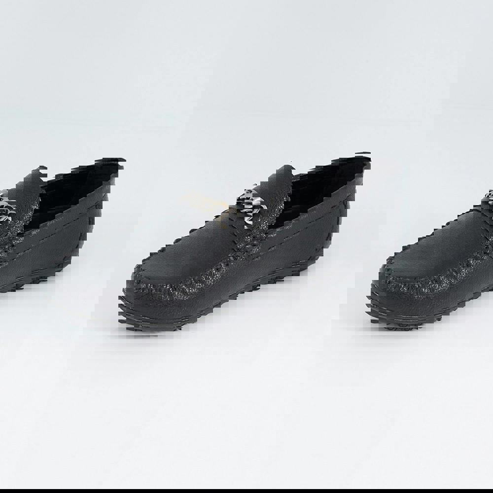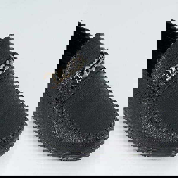 Elevate your footwear game with these loafers. Crafted in a classic loafer shape with a sleek faux leather finish, these slip-ons feature a standout silver chain detail across the front for a refined, contemporary twist. Designed for ease and impact, they offer effortless slip-on styling that pairs perfectly with smart and casual looks. Ideal for everything from office days to evening outings.