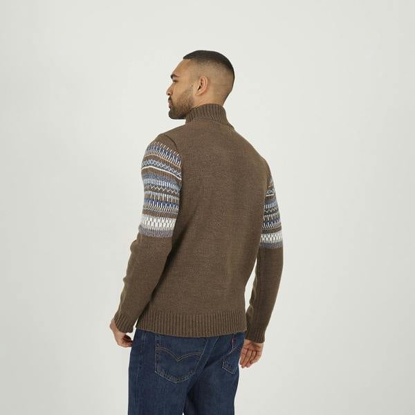 Brave Soul Quarter Zip Fair Isle Jumper - Brown