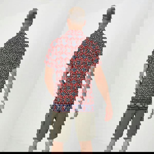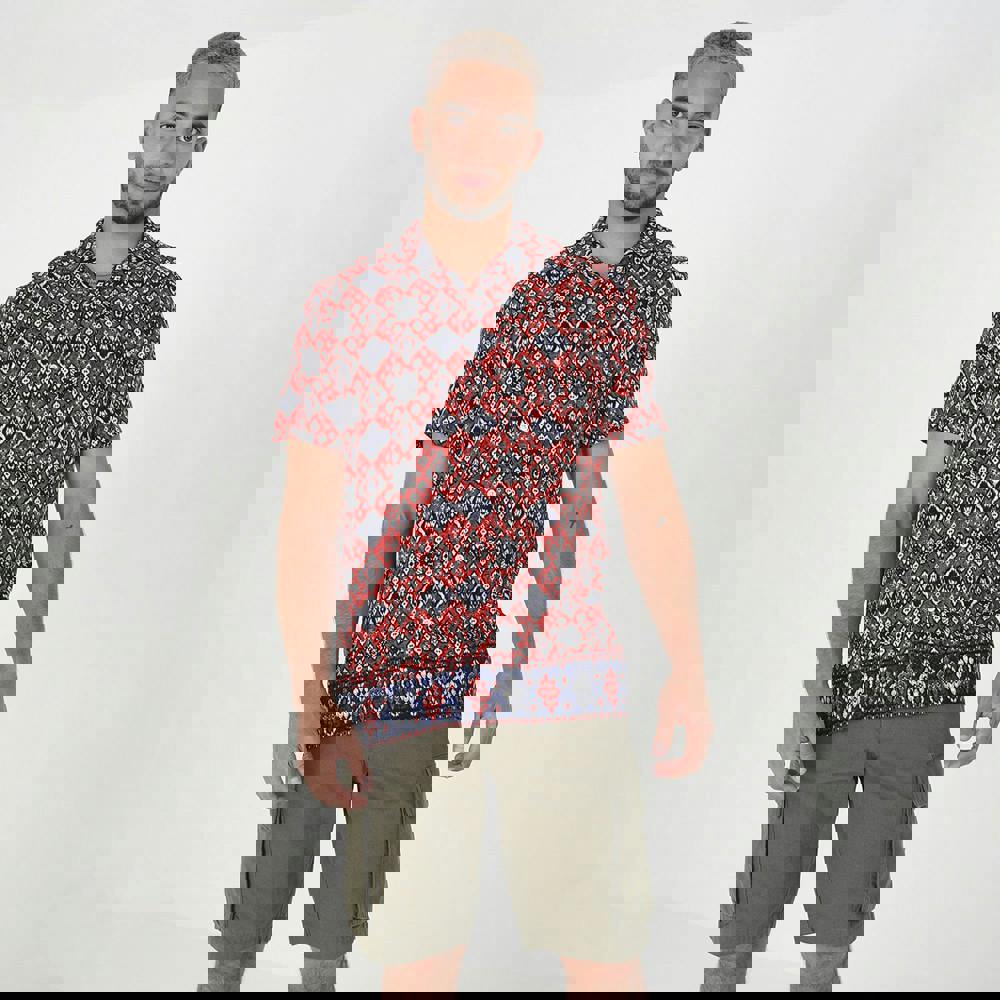 Upgrade your style this season with this revere collar print shirt. This short sleeve style features a standout all-over print, revere collar and branded button fastenings. Team with shorts for a laidback holiday look or with jeans for an elevated casual look. Model wears UK size M.