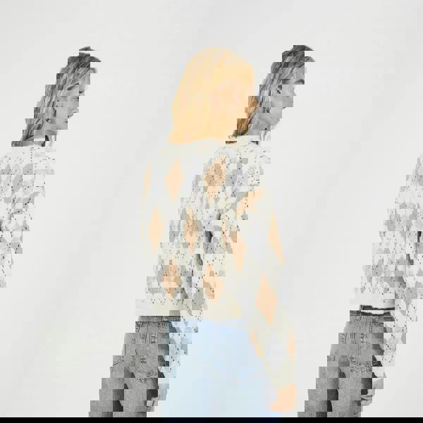 Add a touch of retro charm to your wardrobe with this cardigan. Featuring a round neck and cropped length, it’s designed with an all-over argyle knit and contrast trims at the neck, cuffs, hem. Finished with ribbed edges and a classic button closure, it’s a stylish layer for any season. Model wears UK size S.