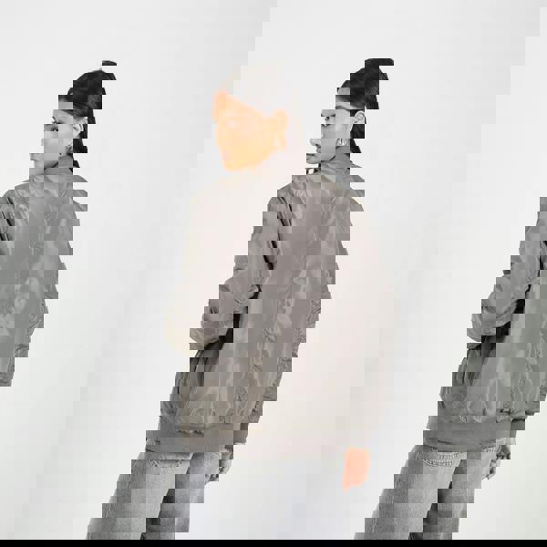 Get ready to elevate your wardrobe with this oversized bomber jacket. With its trendy bomber-style design, oversized fit, ruched sleeve detail, and padded and lined construction, this jacket is the perfect combination of style and comfort. The ribbed cuffs and hem provide a snug fit. Available in other colours. Model wears UK size 8.