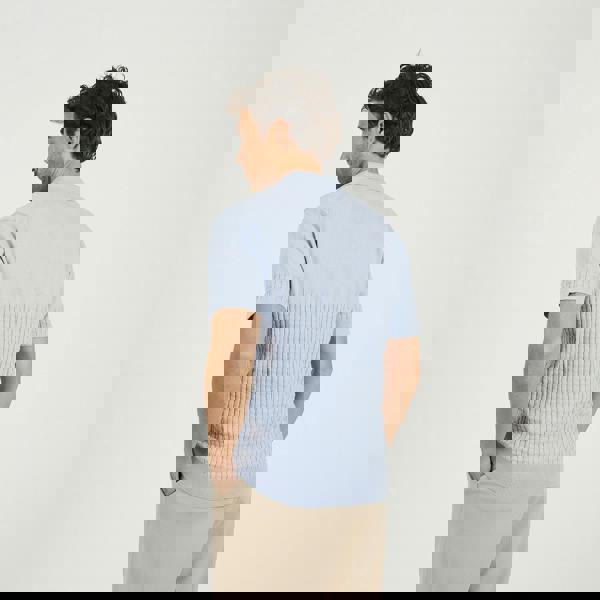 Update your casual wardrobe with this knitted polo shirt. This short sleeve polo offers a relaxed fit, perfect for everyday wear, whether you’re out with friends or enjoying a weekend outing. Featuring jacquard pattern knit to the bottom half of the body, adding textured detail that elevates the classic polo design, and the open collar gives a modern touch. Model wears UK size M.