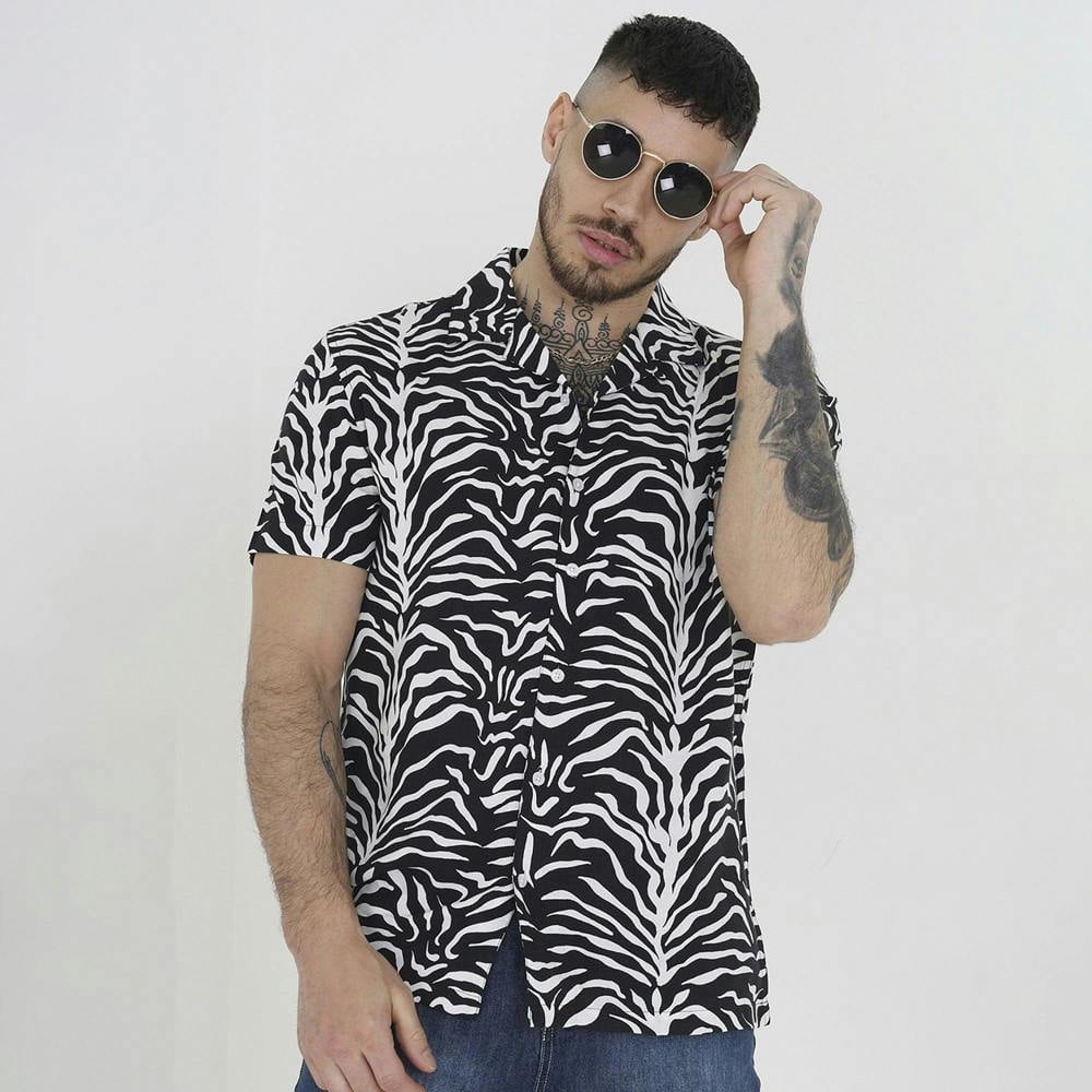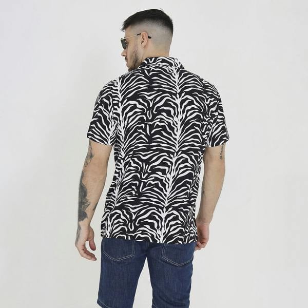 Elevate your style this season with this print shirt. This short sleeve design features a striking all-over print, revere collar and branded button fastenings. Layer over a basic t shirt and jeans or shorts to enhance the look. Model wears UK size M.