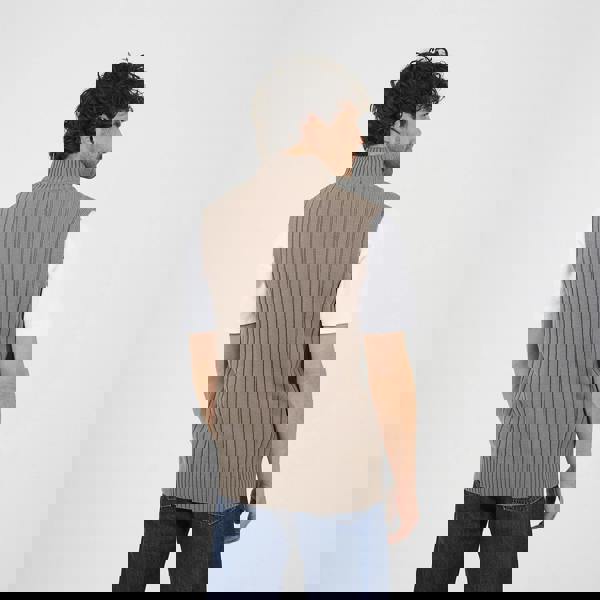 Layer with ease in this sleeveless quarter zip jumper. Featuring a funnel neck with zip closure and ribbed knit detailing at the neck and hem, it offers lightweight warmth without restricting movement. Perfect for layering over shirts or tees, this versatile piece adds style and comfort to your transitional season wardrobe.