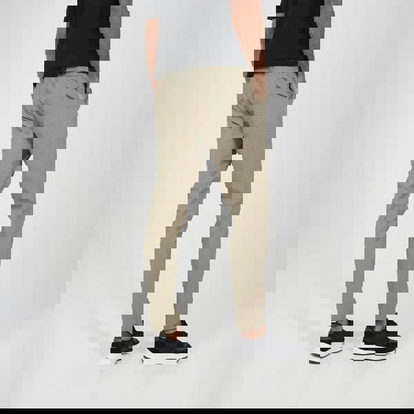 Elevate your casual wardrobe with these seersucker trousers. These slim leg trousers offer a tailored fit, while the elasticated waist ensures all-day comfort. With one back pocket and two side entry pockets, these trousers offer practical storage for your essentials, combining both function and style. Perfectly paired with the matching seersucker bomber jacket, these trousers complete a coordinated, on-trend look. Model wears UK size M.