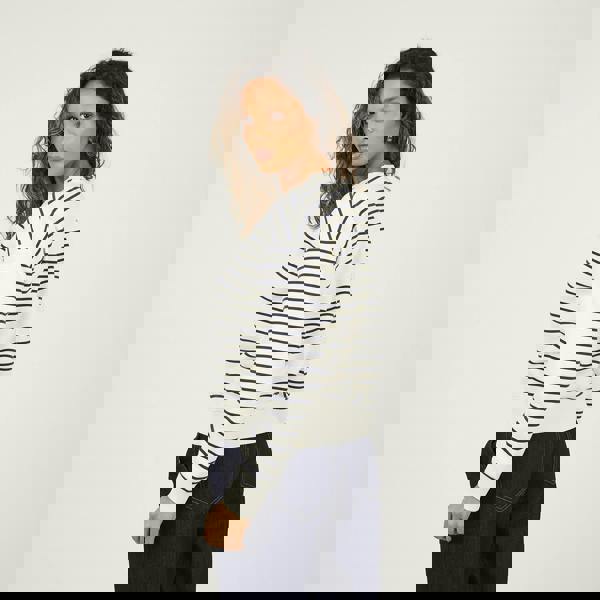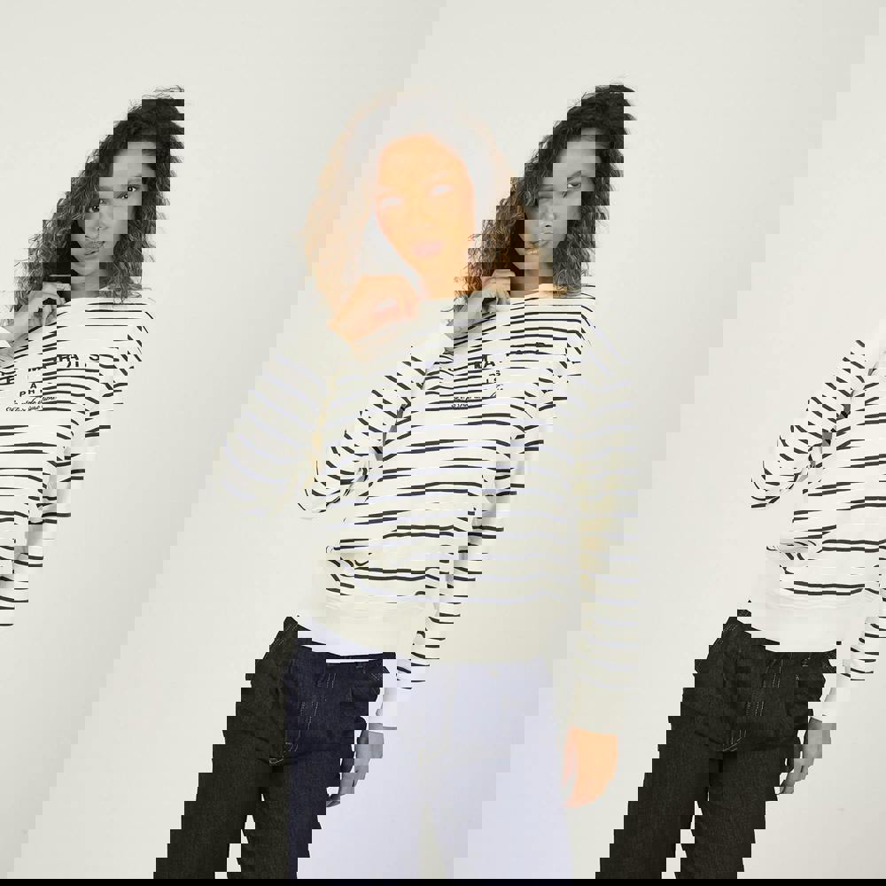 Add a pop of print to your casual wardrobe with this sweatshirt. Featuring long sleeves and an all-over stripe design, it’s finished with a contrast crew neck for a sporty twist. Chest embroidery adds subtle detail, while ribbed neck, cuffs, and hem provide a comfortable, secure fit—perfect for everyday style. Model wears UK size S.