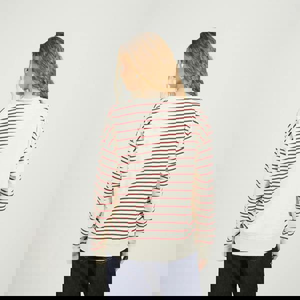 Add a pop of print to your casual wardrobe with this sweatshirt. Featuring long sleeves and an all-over stripe design, it’s finished with a contrast crew neck for a sporty twist. Chest embroidery adds subtle detail, while ribbed neck, cuffs, and hem provide a comfortable, secure fit—perfect for everyday style. Model wears UK size S.