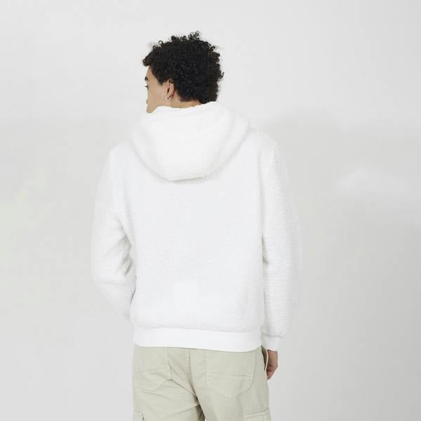 Level up your style with this hoodie. Made from an all-over teddy fleece, it features a fixed hood with drawcords, a roomy kangaroo pocket, and ribbed hem and cuffs for a snug finish. Ideal for layering, this hoodie delivers warmth, comfort, and effortless street-ready appeal. Model wears UK size M.