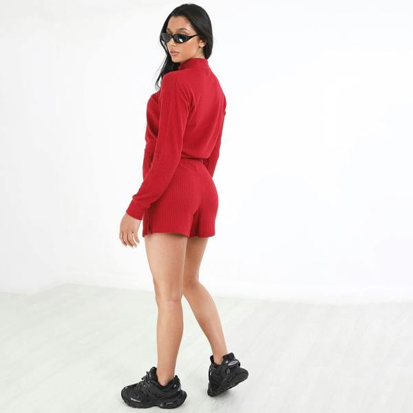 Indulge in comfort with this Brave Soul two-piece lounge set. Including a long-sleeved waffle half-zip top, while the matching high-waisted shorts feature button detailing. Machine washable for easy care, this set is a perfect blend of style and comfort.