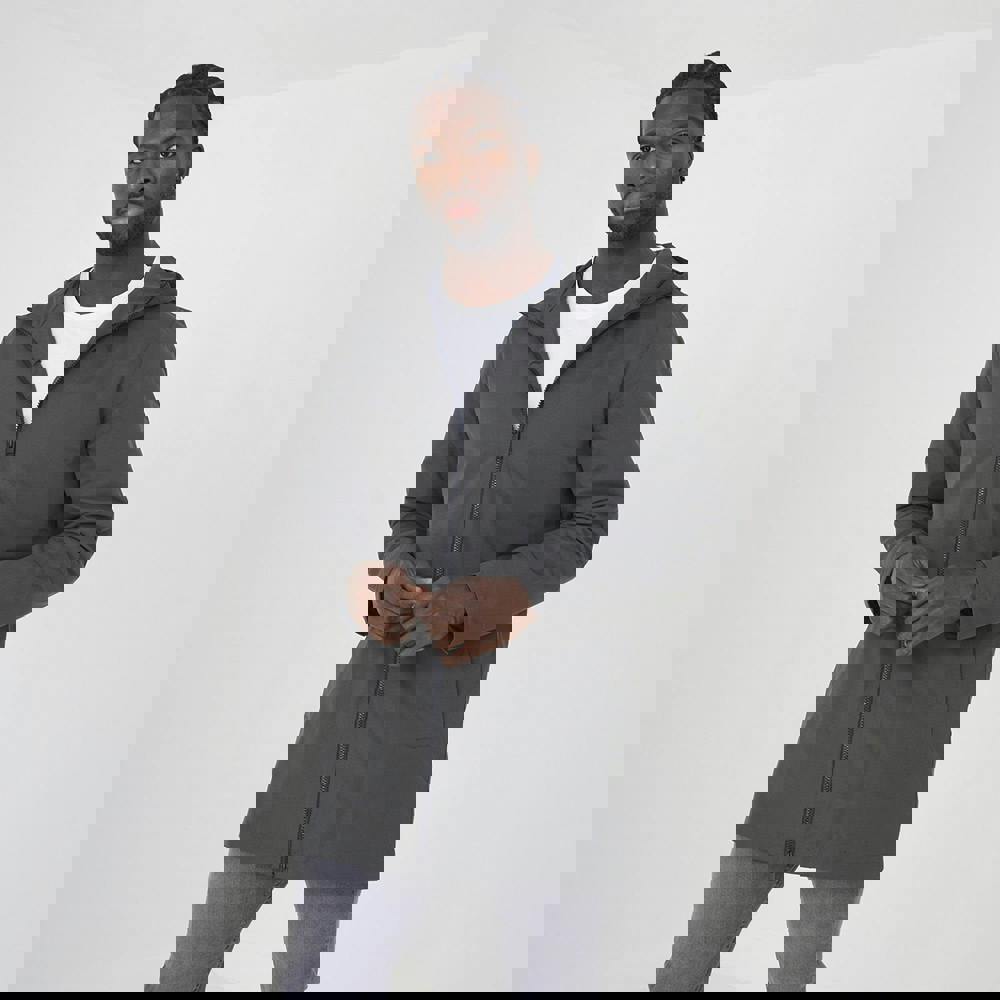 Upgrade your wardrobe with this mac jacket. Featuring a zip fastening, fixed hood, and two lower pockets, this unpadded design is perfect for creating a smart-casual look. Model wears UK size M.