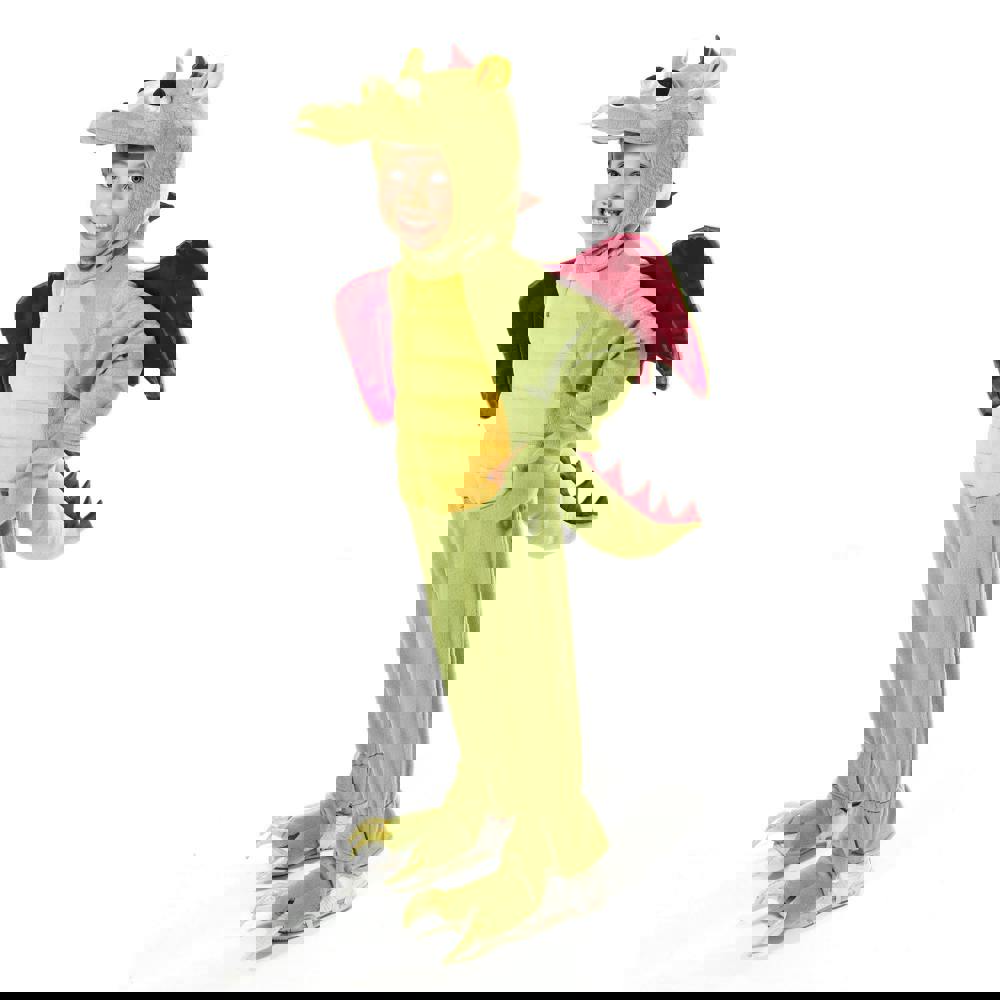 Jumpuit zips up at the front and includes wings, spike detail on the back and claws on the feet.
